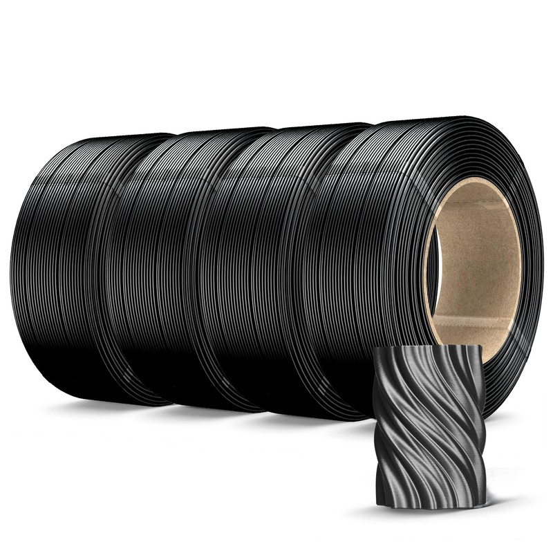 SUNLU 500g Silk PLA Filament Refill 1.75mm, Silk Black PLA Plus Refill 4 Packs, No-Spool 3D Printer Filament 2KG for Reusable Spools, Compatible with Bambu Lab 3D Printers, 0.5KG/Roll Silk Black