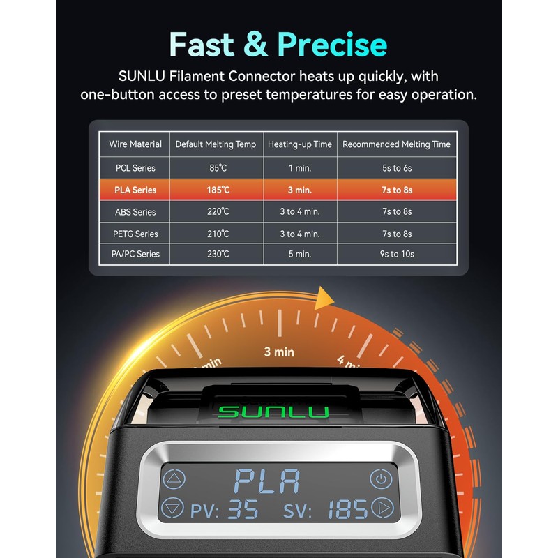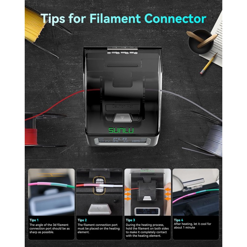 - Turn into Value: SUNLU Filament Connector can fuse the remaining filament on the spool, maximizing the use of each roll of 3D filament and reducing waste