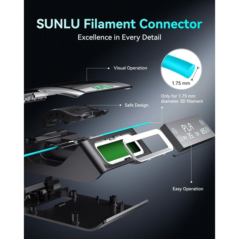 SUNLU SUNLU Official Filament Connector, Fast Heating, Compatible with 1.75mm PLA PETG TPU ABS PA Nylon, Easy to Use, Pack with 200PCS PTFE Sleeve