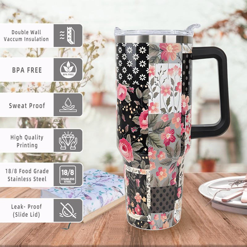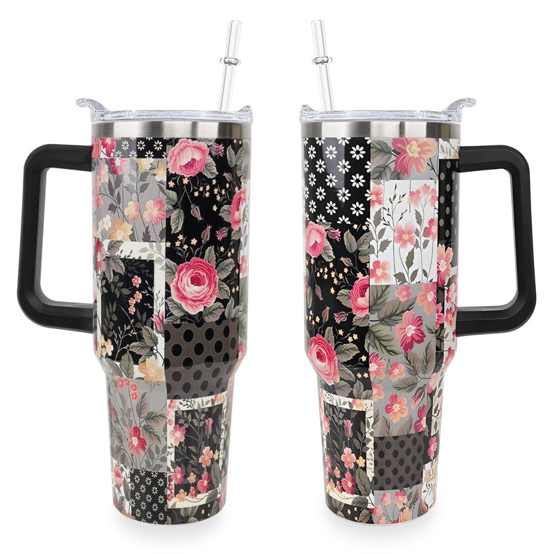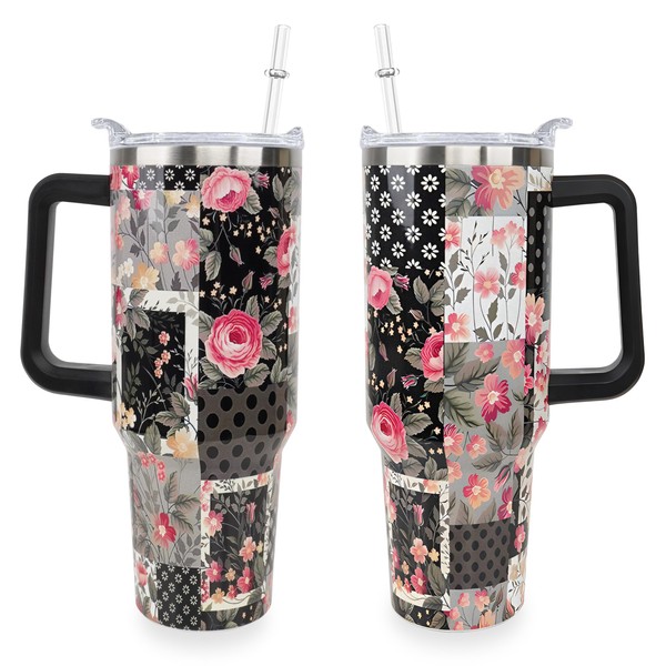 Sunmdecor Mother's Day Nice Gift for Mom Grandma - Pioneer Women Tumbler with Handle and Silicone Straws - 40 Oz Flower Cups Insulated Tumbler - Birthday Gift for Wife