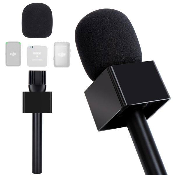 SUNMON Mic Handle for Rode Wireless GO I/II/Pro DJI Mic 1/2,Rode Interview Microphone Adapter Handheld with Interview Cube Box
