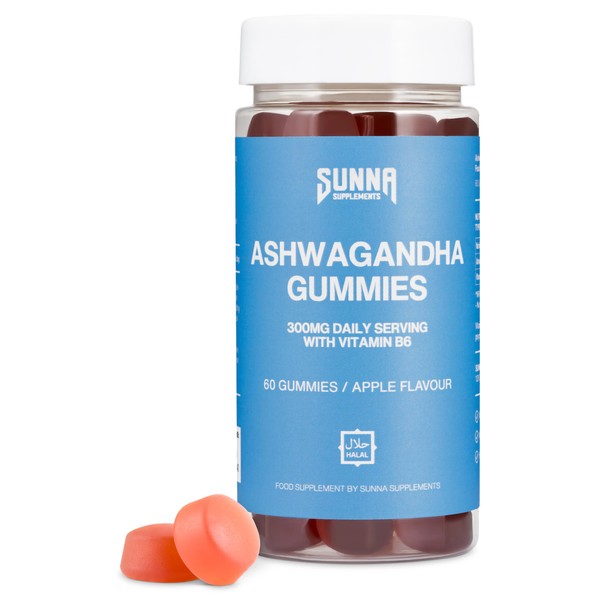 SUNNA SUPPLEMENTS SUNNA SUPPLEMENTS High Strength Ashwagandha Gummies 300mg, Stress, Mood & Sleep Support with Vitamin B6, Vegan, Non-GMO, Halal Natural Fruity Flavor C Anxiety Relief & Cortisol Support 60 Gummies