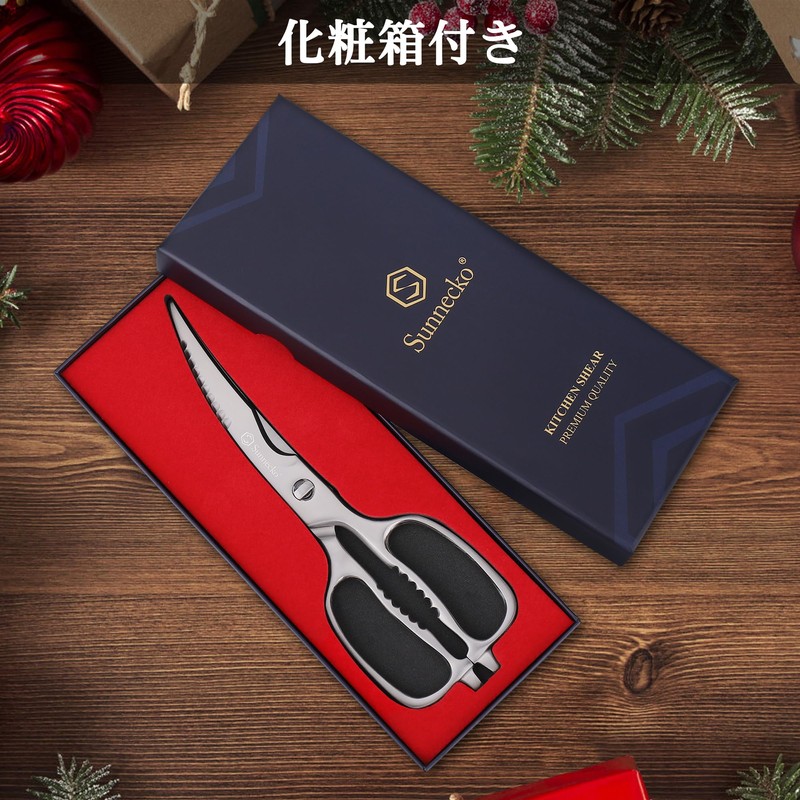 Sunnecko Kitchen Scissors, Kitchen Scissors, All Stainless Steel, For Cooking, Disassembly, Versatile Scissors, Multi-functional, Gift (Curved Kitchen Scissors)
