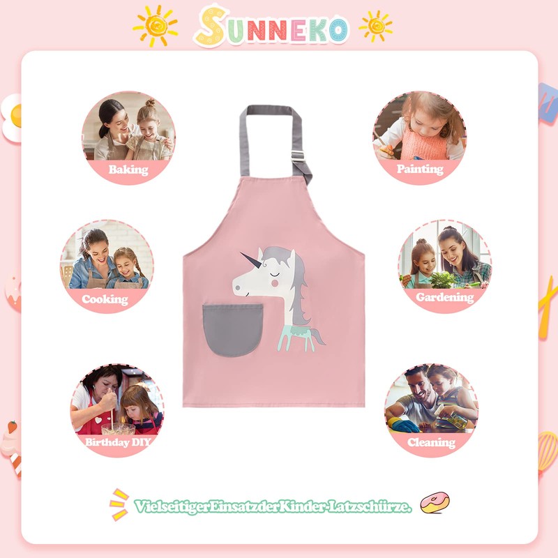 SUNNEKO Cooking Apron Children's Aprons Child with Pocket Waterproof Boys Girls Adjustable Kitchen Apron Craft Painting Baking Cooking Painting Apron Artificial Gown Work Apron Painting Craft Apron, Unicorns, Kind / 1 Schürzen+2 Ärmel