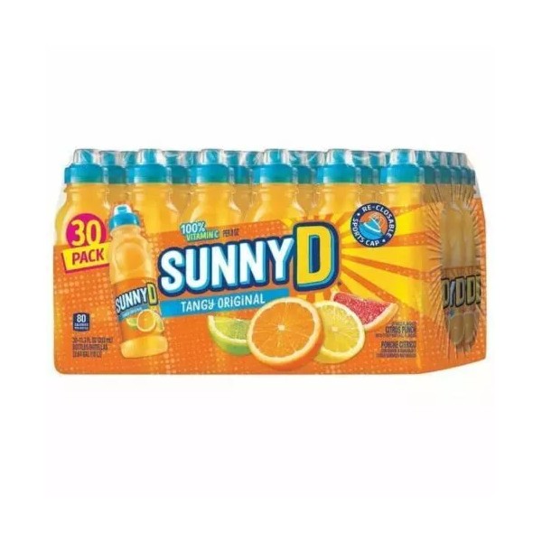 SunnyD Tangy Original Sports Bottles feature the original flavor of SunnyD in a reclosable sports cap bottle. This signature SunnyD flavor has a one-of-a-kind orange taste that will quench your thirst all while offering your daily fix of vitamin . This pack includes 30 bottles of SunnyD Tangy Original.