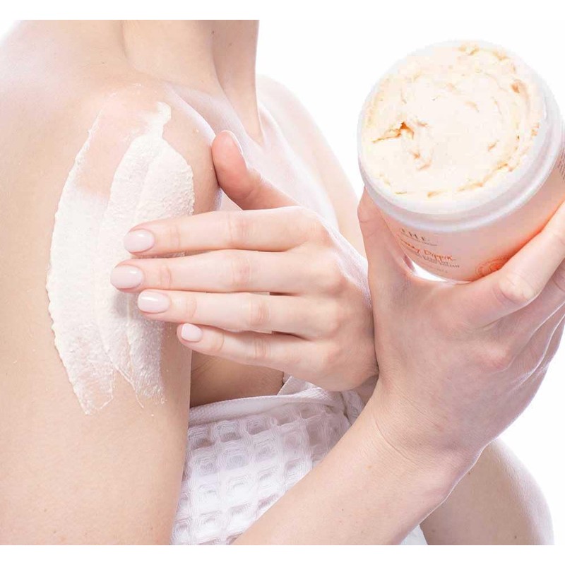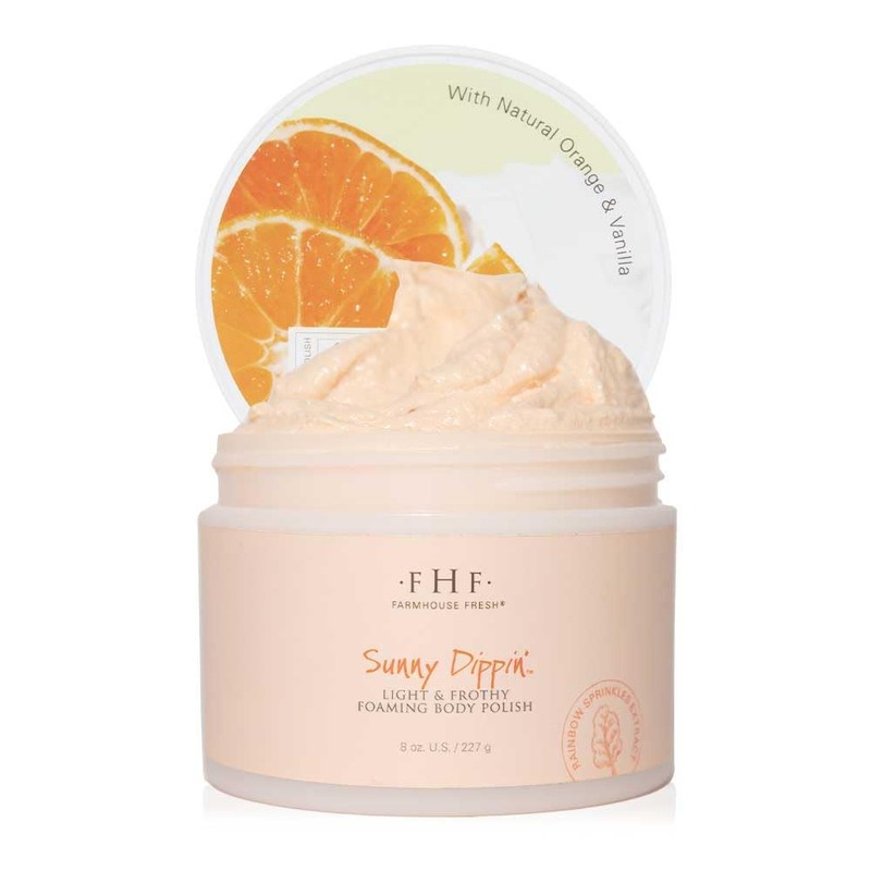 - Transform your shower into a true pampering treat with our foaming body polish. Its creamy, frothy lather both cleanses and buffs away rough patches, leaving skin so silky smooth and satiny you can’t help but touch.