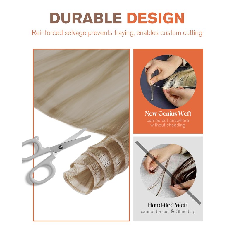 - 2. Seamless Fusion, Natural Look: Genius Weft Extensions blend naturally with your hair, ensuring no short hairs and a neat appearance. Incorporating backcombing aligns hair cuticles in one direction, minimizing tangles and enhancing the product's longevity.