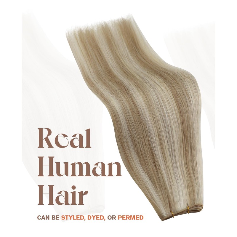 Sunny Hair Genius Weft Hair Extensions Human Hair Invisible Hand Tied Weft Sew in Hair Extensions for Women Real Human Hair Golden Blonde Highlights Dark Ash Blonde 20 inch