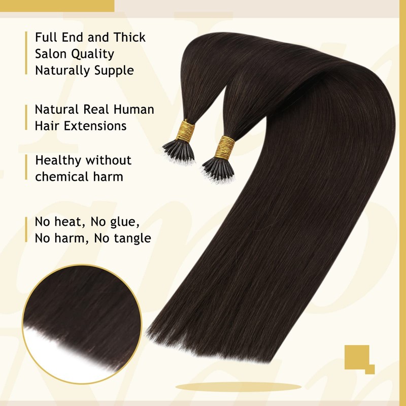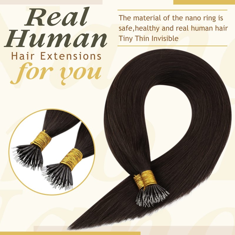 Sunny Hair Nano Beads Hair Extensions For Women Real Nano Hair Extensions Human Hair Remy Loop Ring Tip Extensions Human Hair Cold Fusion 50G/50S Brunette Dark Brown 14 inch