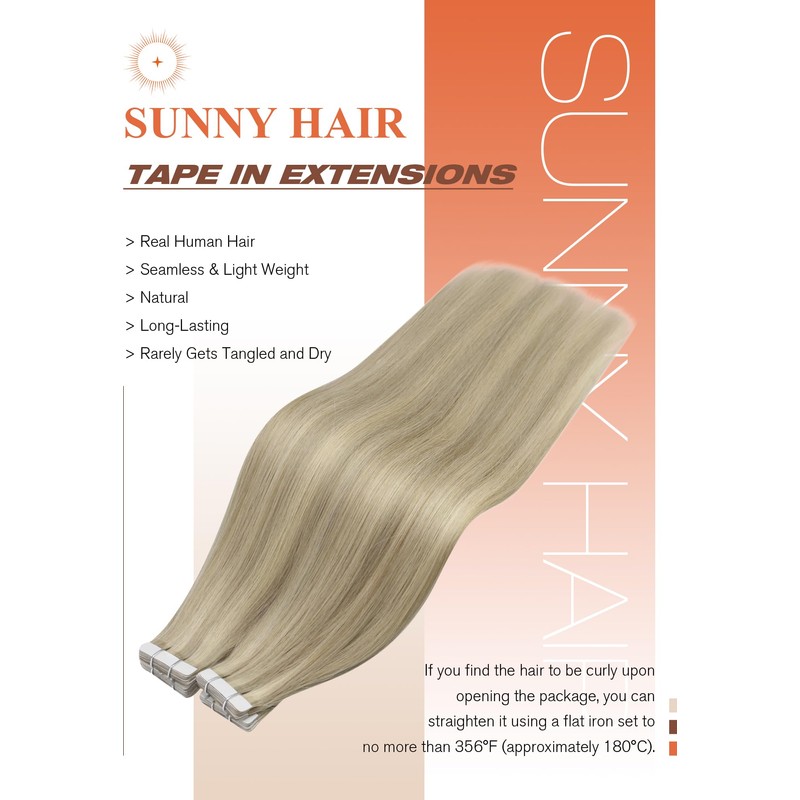 - Unlock your styling creativity with Sunny Hair: All tape hair extensions is made from real human hair, can achieve smoothness, straightening, curling and dyeing to dark color; Use "Sandwich" method, heating the tapes 2-3s when installation can increase the stickiness; Apply the conditioner or oils on hair ends will keep shiny and silky