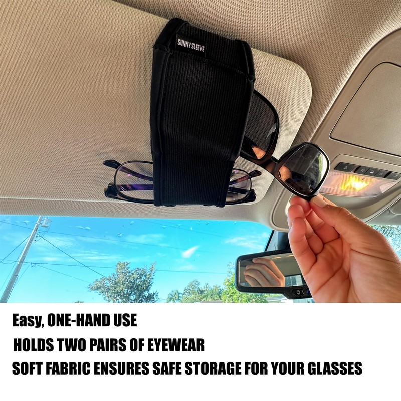 Sunny Sleeve - Sunglass Holder for Car Visor - Easy, ONE-Hand Operation Holds Two Pairs of Eyeglasses (Black)