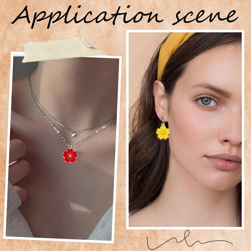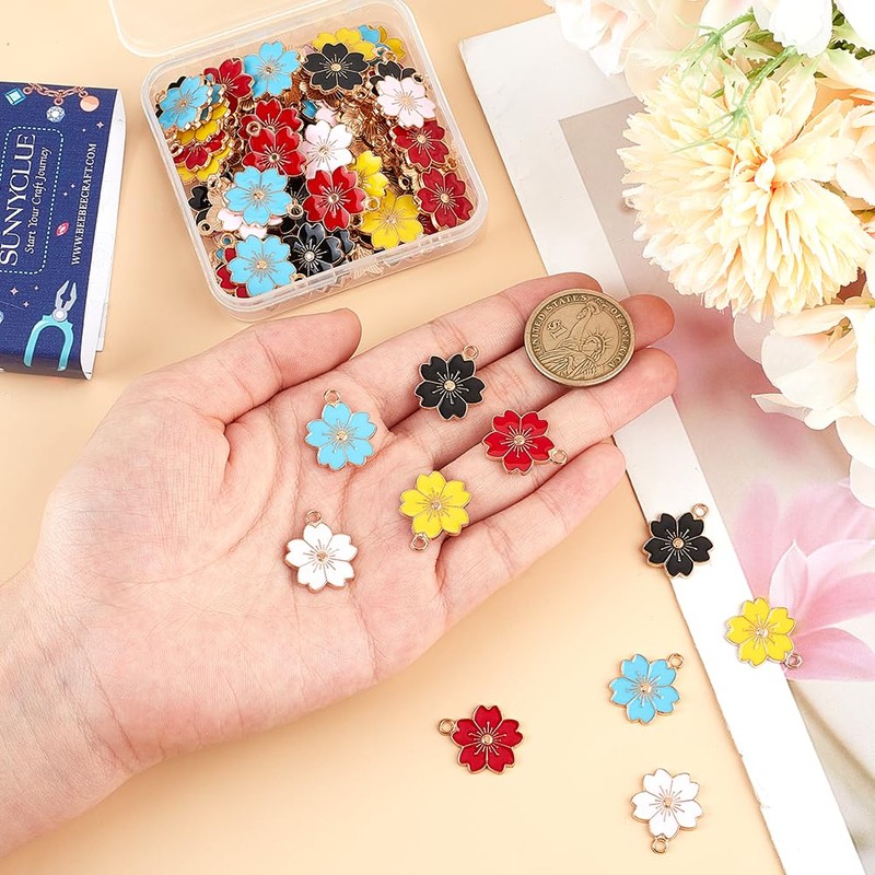 SUNNYCLUE 1 Box 100 Pieces 5 Colours Japanese Cherry Blossom Pendant Small Flower Pendant Enamel Flat Pink Red Spring Small Flower Pendant for Jewellery Making Pendant Earrings Wedding Urla, enamel