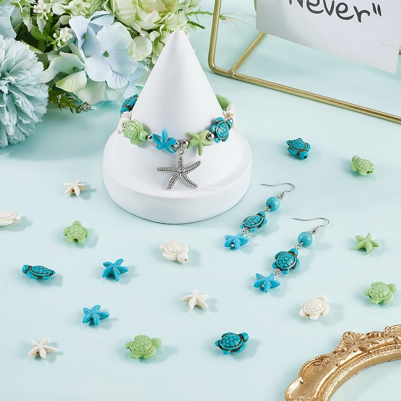- Material: Turtle and starfish beads are made of synthetic turquoise, which featuring unique textures, durable and waterproof. Hard, not easy to break, dyed beads but not easy to fade, ensuring your bracelets will last for years to come