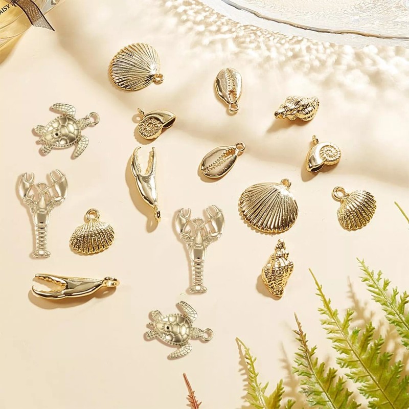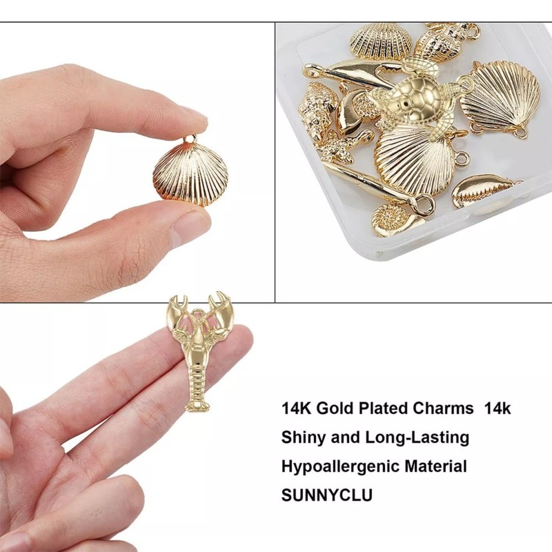 SUNNYCLUE 1 Box 54g Real 14K Gold Plated Charms Bulk Gold Summer Ocean Charm ...