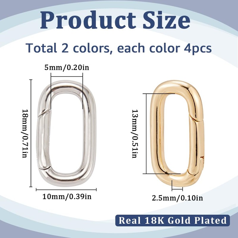 - High Quality: Our oval ring clips are made of high quality real 18k gold plated brass or brass material, exquisite molding, no pits and burrs, good luster, strong and durable