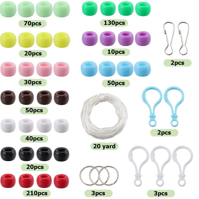- [PREMIUM MATERIAL]: The pony beads are made of resin, light weight, hard, not easy to break or fade. The beading cord is made of polyester, strong, not easy to break. The keychain clasps are made of plastic and iron.
