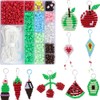 SUNNYCLUE 1 Box DIY 10 Sets Pony Beads Keychain Making Kit 8mm Bead Craft Kits Fruit Themed Red Apple Cherry Watermelon Beading Keychains Chilli Ice Cream Beaded Colorful Opaque Pony Beads for Crafts