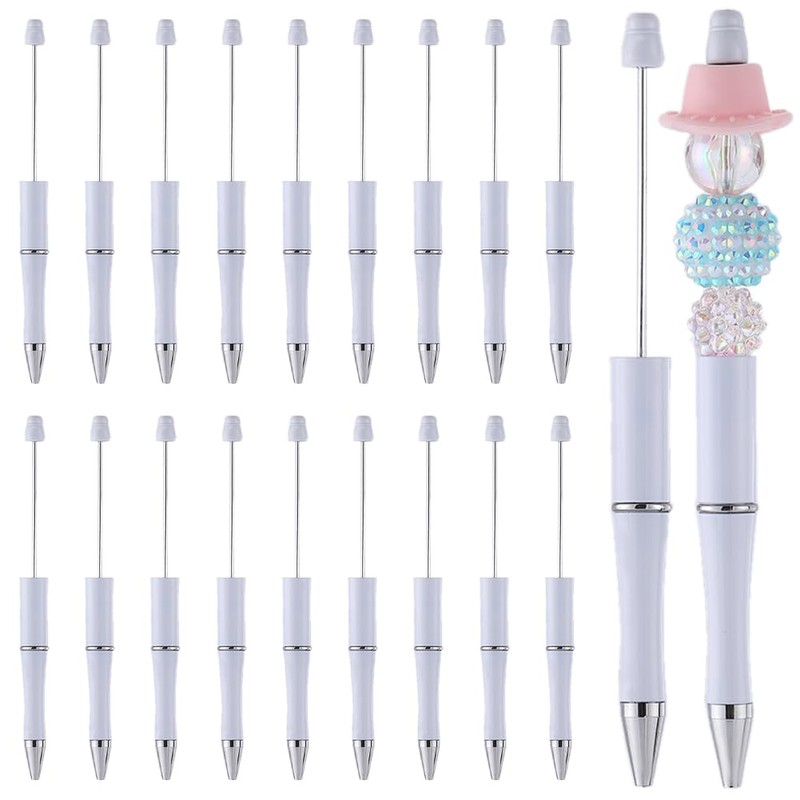 SUNNYCLUE 20Pcs White Bead Pens Bulk Plastic Beadable Pen Creative Retractable Shaft Ballpoint Ink Beaded Pens for DIY Pen Beads Decorations School Office Graduation Supplies Writing Crafts Gifts