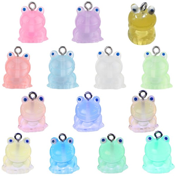 SUNNYCLUE 24 Pieces 6 Colors Fluorescent Frog Charm Resin Frog Charm Resin Charm Cute Charm Animal Pendant Mini Glow in the Dark Parts Earrings Resin Frog Necklace Bracelet Resin Keychain Metal Parts
