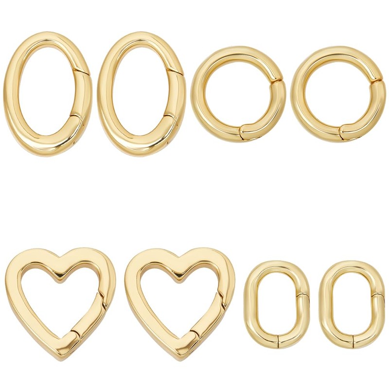 SUNNYCLUE 8Pcs 4 Styles Real 18K Gold Plated Spring O Rings Jewellery Oval Clasp Heart Round Brass Gate Ring Trigger Carabiner Clips Keyring Snap Hook Buckle for Purse Jewellery Bags Lanyard DIY Craft
