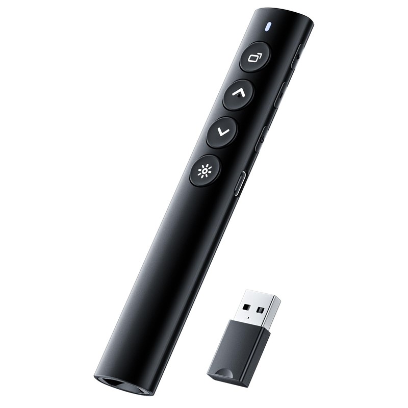 - 🔹【Easy Plug & Play – USB Receiver with Magnetic Dock】The presentation remote simply insert the included USB receiver into your laptop or PC—no drivers or software needed. The built-in magnetic slot in the presenter body securely holds the receiver when not in use, preventing loss and keeping it always at hand.