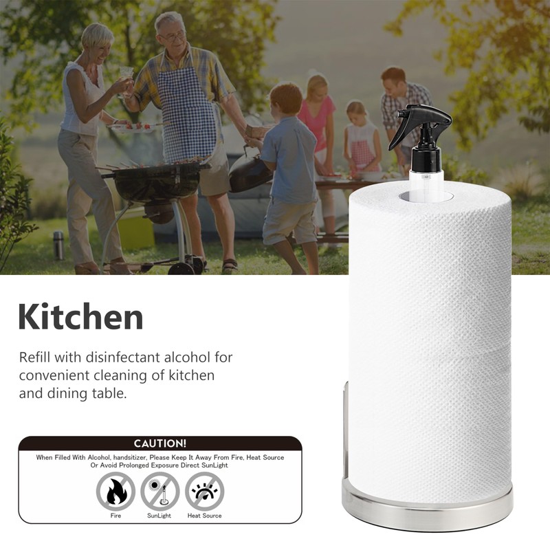 - Multi-Purpose Use: Ideal for various scenarios, not only at home but also in BBQs, restaurants, picnics, and other public places. Whether you are grilling outdoors, dining in a restaurant, or enjoying a picnic, having this paper towel holder stand with a built-in spray bottle will make cleaning up spills and messes quick and effortless.
