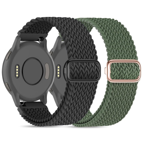 Sunnyson 2 Pack Braided Elastic Band Compatible with Garmin Venu/Venu Sq/Garmin Vivoactive 3/ Vivoactive 3 Music,20mm Adjustable Watch Band Nylon Woven Replacement Straps Wristband for Garmin Venu 2