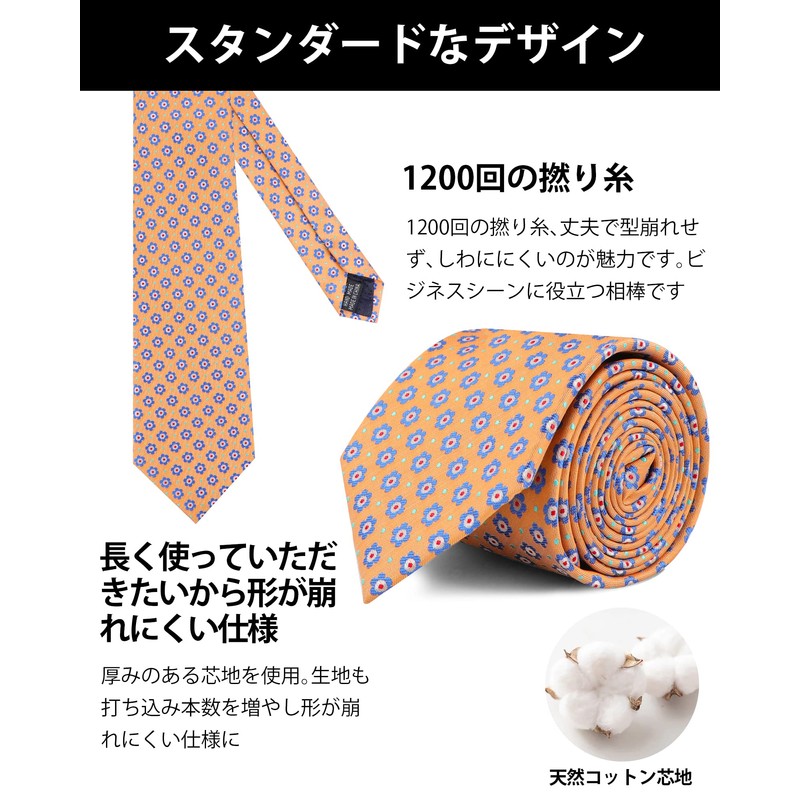 SUNOGE Necktie, Chief, Tie Clip, 5-piece Set, For Business, Weddings, Job Hunting, School Entrance Ceremonies, Graduation Ceremonies, Father's Day, Luxury Men's, Gift Box Included, D15 Orange