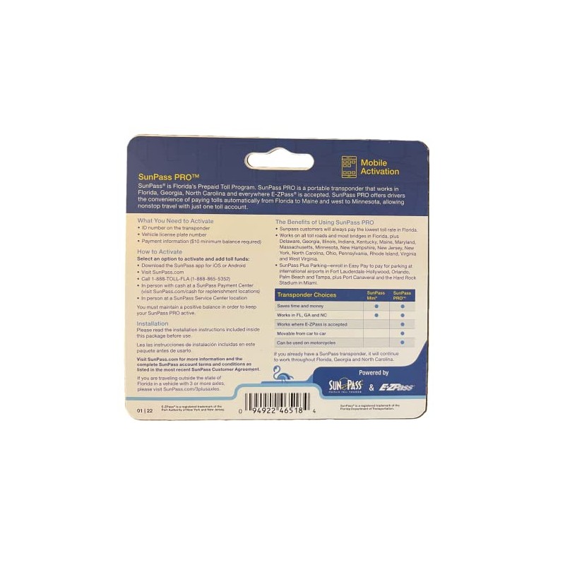 - Portable transponder that sticks to your windshield. Easy to take on and off with suction cups. This product lets you use Sunpass in any car and is not tied to one license plate like the Sunpass Mini edition.