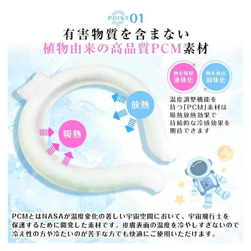 - The evolution of the last year best-selling product is released in 2023. Ice neck ring, also known as a cool neck ring, cool ring, neck cooler, neck cool band, or neck cool ring, is a cooling item that cools your neck. Made of high quality PCM material that does not contain harmful substances. This neck cooler is made from NASA developed "PCM material" that freezes in space below 28 degrees (a material developed to protect astronaut in the space). This material is fast to consolidate, slow to melt. Cools faster (5-20 minutes in freezer or ice water) than water or other cooling supplies and lasts longer. It reduces the feeling of humid heat and discomfort during the summer and rainy season, so you can spend it comfortably all day!