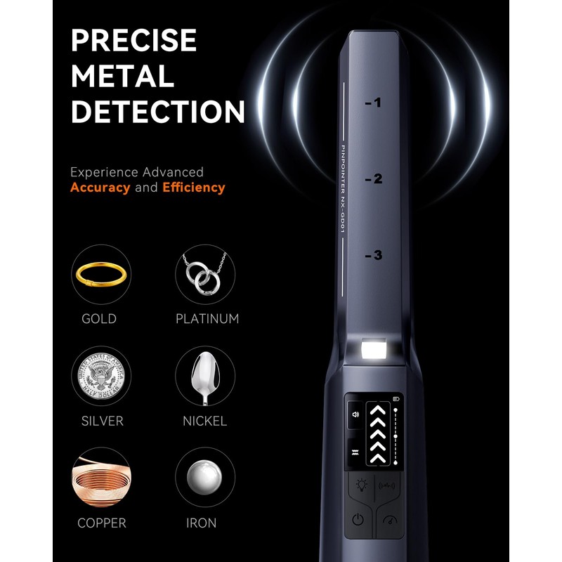 SUNPOW Metal Detector Pinpointer Rechargeable for Adults & Kids, Adjustable Sensitivity, IP68 Fully Waterproof, 360° Detection, 4 Modes - Handheld Pin Pointer Wand with LCD Screen - NXGD01