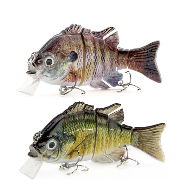 Sunrise Angler 4 Inch Bluegill Jointed Swimbait | Sinking Hard Bait Fishing Lure for Freshwater Game Fishing with Textured Lifelike Skin, Curvy 'S' Swim and 3D Prismatic Eyes (Natural Combo A)…
