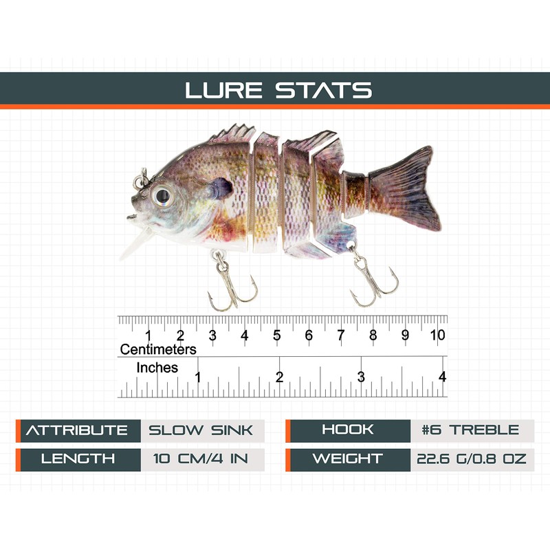 Sunrise Angler 4 Inch Bluegill Jointed Swimbait | Sinking Hard Bait Fishing Lure for Freshwater Game Fishing with Textured Lifelike Skin, Curvy 'S' Swim and 3D Prismatic Eyes (Natural Combo A)…