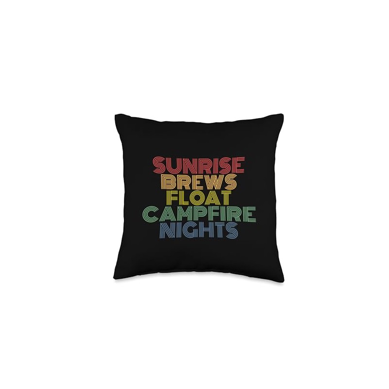 Sunrise Brews Float Campfire Nights Lake Life Vibes Retro Throw Pillow