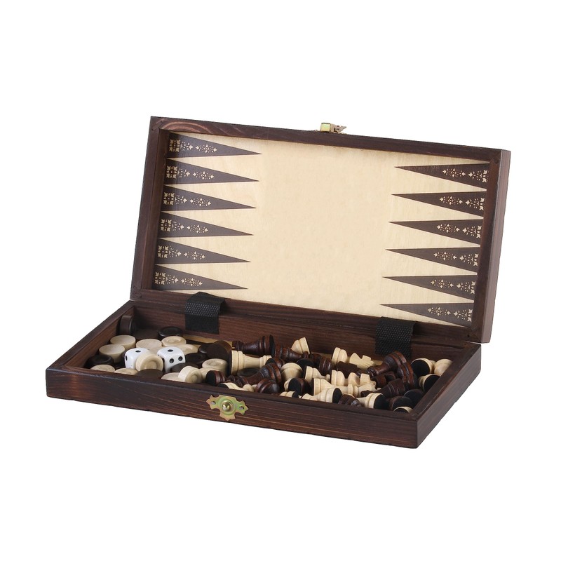 - Popular games - Chess, checkers and backgammon are a canon of games that enjoy great popularity. Now available in a set, packaged in an elegant cassette.