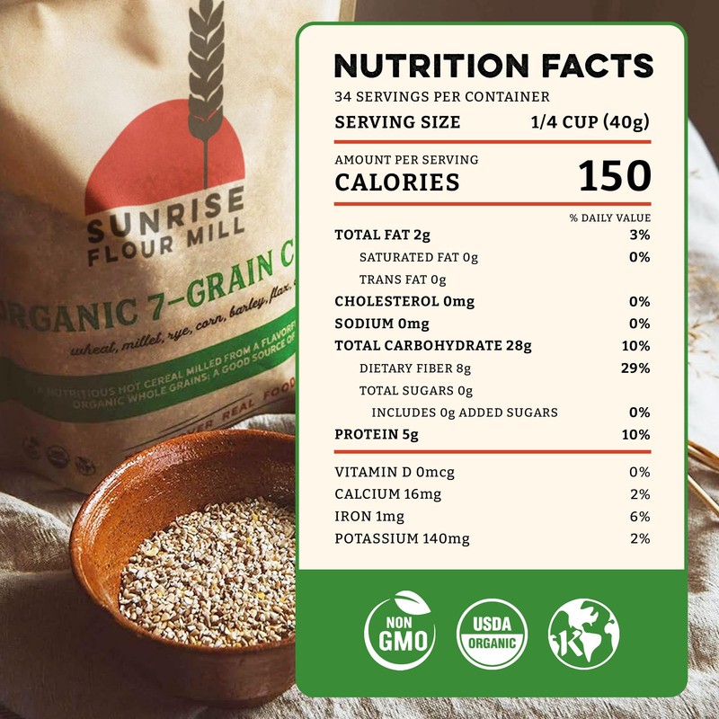 Sunrise Flour Mill USDA Organic Heritage 7-Grain Hot Cereal Mix - 48 oz | Gre...