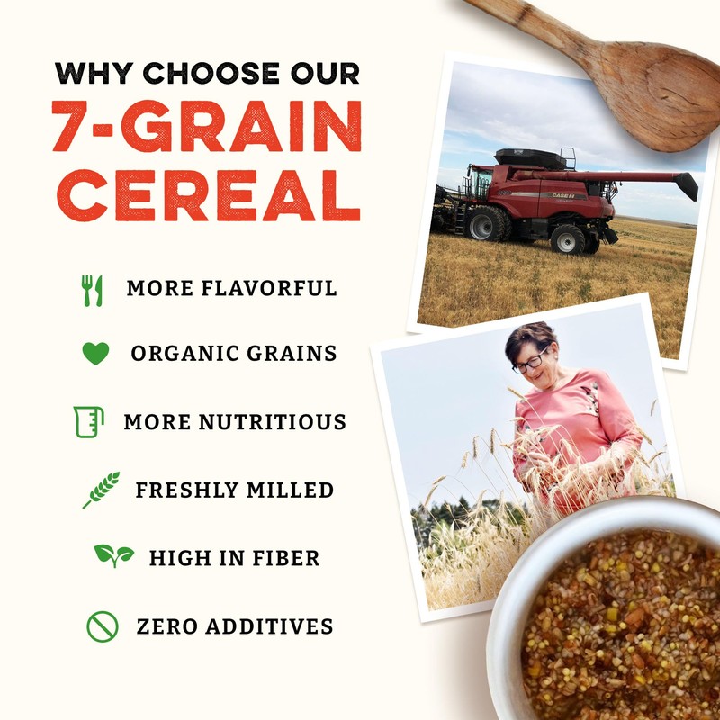 • SEVEN GRAINS - This surprisingly light yet filling blend of 7 organic whole grains includes Wheat, Oats, Rye, Barley, Corn, Rye, Flax and Millet