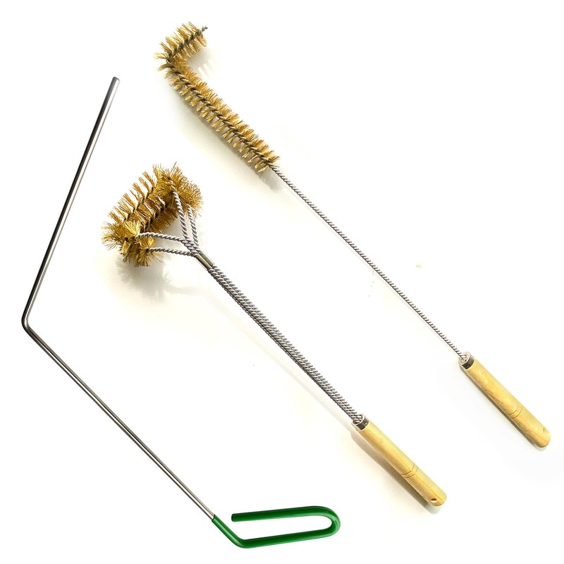 SUNRISE Fryer Brush with Long Handle (Brass, L, Double Brush, and Rubber Handle Cleaning Rod)