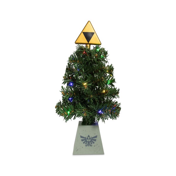 - Decoraciones navideñas con estilo: introduce un poco de juego en tu diversión de temporada con The Legend of Zelda. El mini árbol de Navidad cuenta con una réplica de decoración Triforce y se coloca sobre una base de símbolo Hyrule.