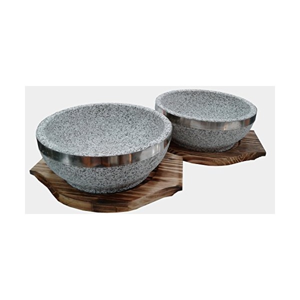 - 32 oz stone bowl great for making soup, stew, or even rice. Comes with wood underline to serve on table.