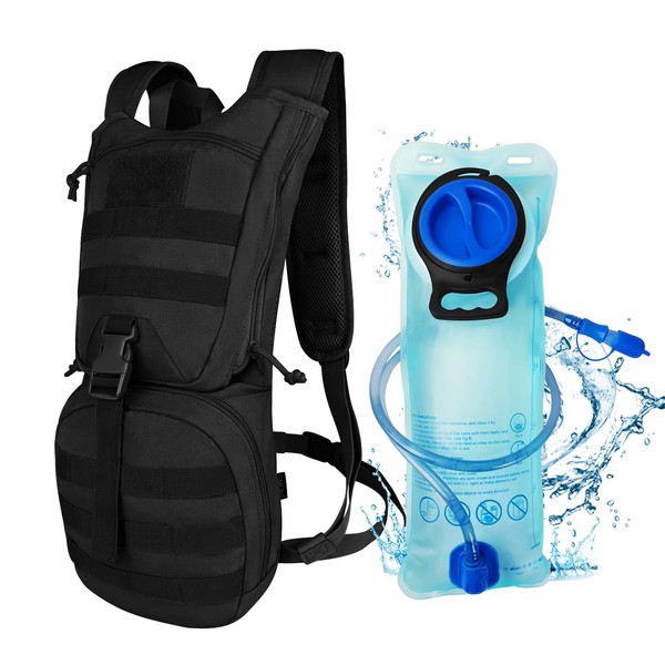 SUNRISING Tactical Molle Hydration Backpack with 3L Water Bladder - Lightweight Military Water Backpack for Hiking, Running, Cycling Black