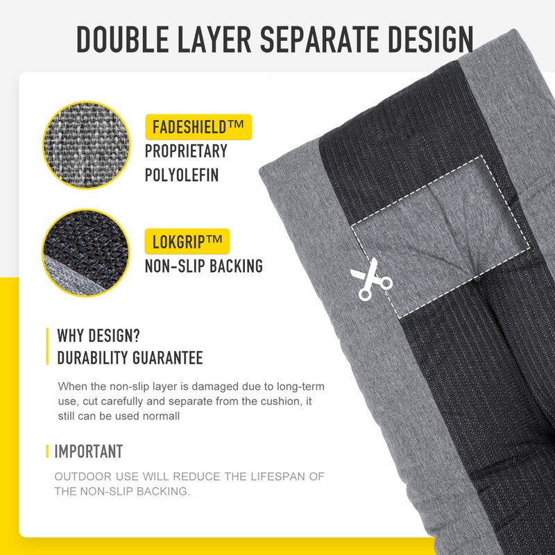 - 【 Double-layers Bottom Separate Design 】In addition to the LokGrip non slip backing layer, also have peoprietary polyolefin protective layer inside, which effectively prevents damage to the foam filling due to friction. Even if the spider web shape bottom non slip layer is damaged due to long-term use, cut carefully and separate from it, the chair cushion also can still be used normal, double protective, make the chair cushion more durable.