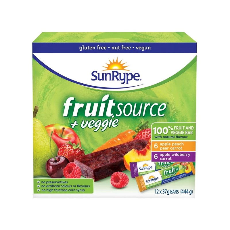 SunRype FruitSource Veggie 100% Fruit and Vegetable Bar Snack Variety Pack, 444g/16oz., {Imported from Canada}
