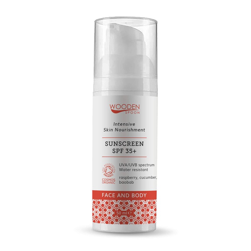 - Organic Raspberry Sun Cream SPF 35+ is a unique blend of valuable oils that slow down skin ageing of sun-exposed skin.
