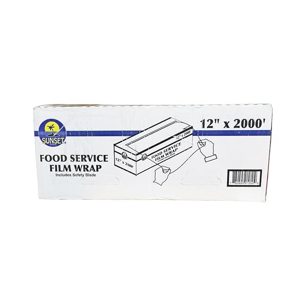 Sunset Food Service Plastic Film Wrap - 12" x 2000' - Includes Safety Blade