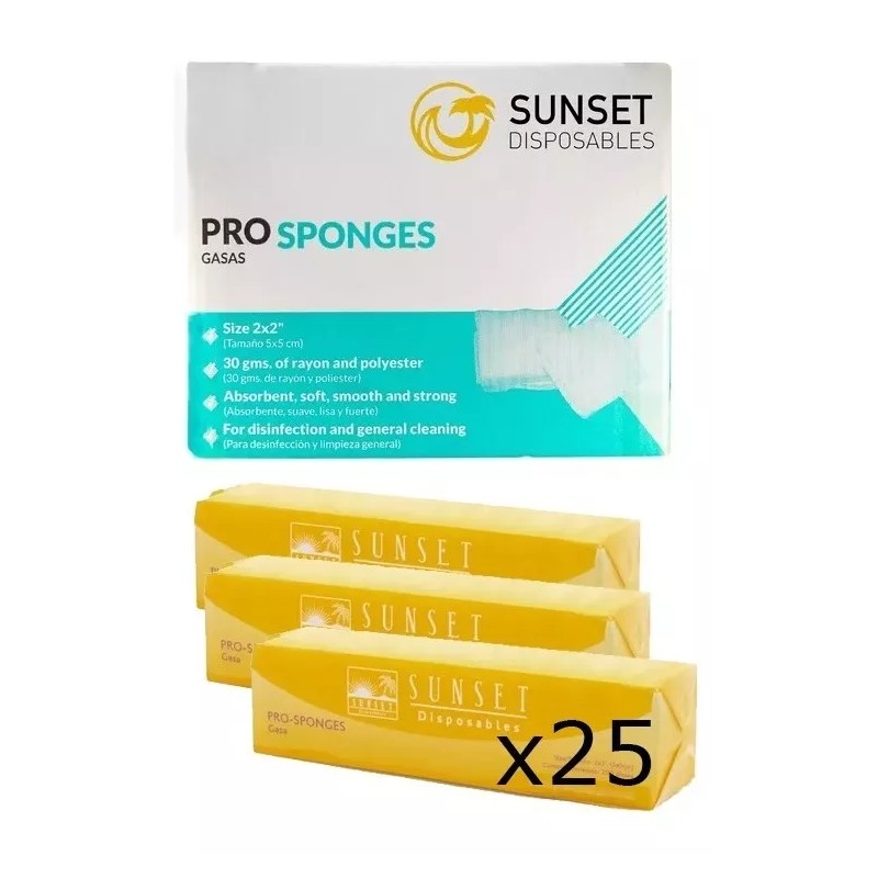 Sunset Gasas Absorbentes Caja Con 25 Paquetes 2x2