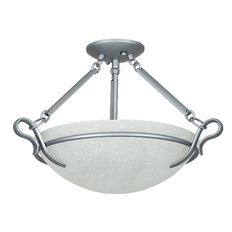 Sunset Lighting F5486-53 Semi Flush Mount with Linen Glass, Satin Nickel Finish