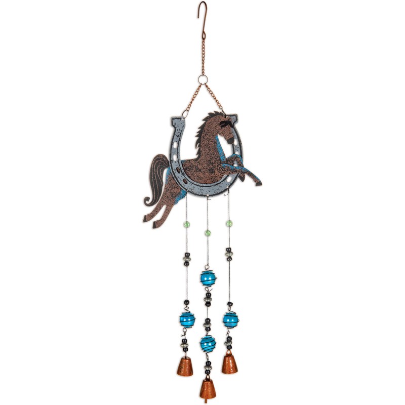 - HORSE WINDCHIME Rustic metal construction with glass marble accents