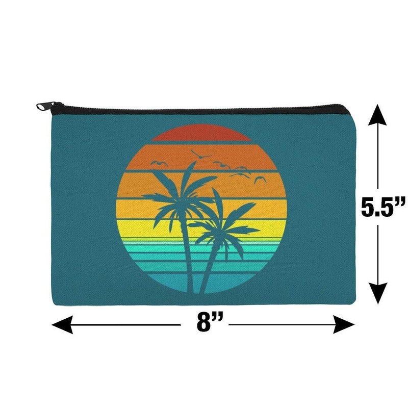Sunset with Palm Trees Graphic Makeup Cosmetic Bag Organizer Pouch