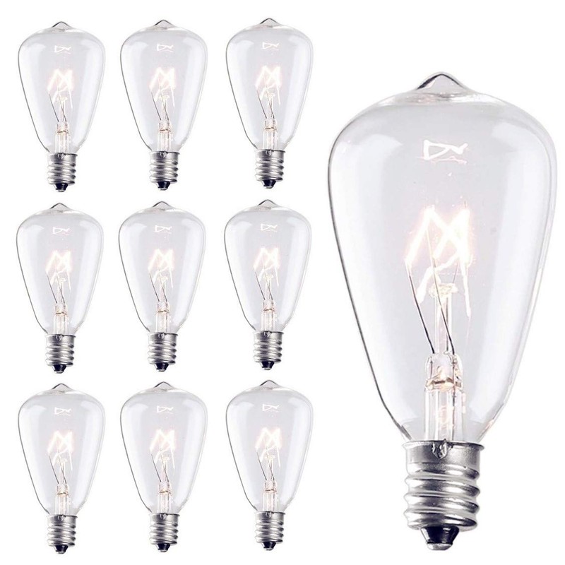 SUNSGNE 10-Pack Edison Replacement Light Bulbs, 7-Watt E12/C7 Candelabra Base ST38 Replacement Clear Glass Light Bulbs for Outdoor Patio String Lights, Warm White